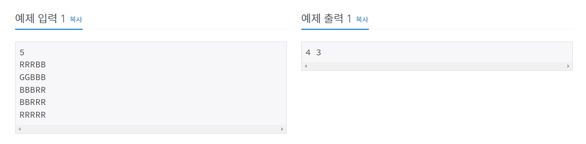 if blind == 1 and (tmp == 'R' or tmp == 'G'): # 적록색약이면서 구역의 색깔이 R이나 G이면
