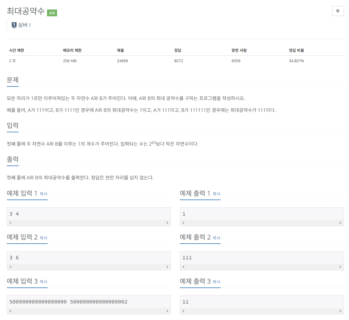 print('1' * gcd(num1, num2))'Python > 백준' 카테고리의 다른 글