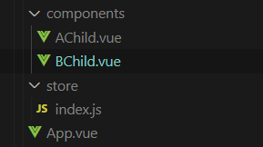 App.vue에서 AChild, BChild라는 두 개의 하위 컴포넌트를 가지고 있음