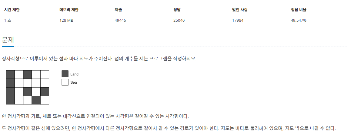 2중포문으로 완전탐색을 하다가 섬을 만나게 되면 bfs를 이용하여 8방향으로 이어져있는 섬이라면 0으로 바꿔주면서 진행했다.