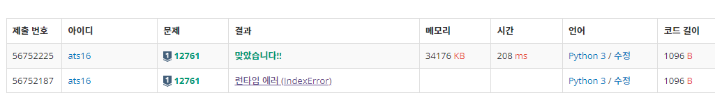 - 인덱스에러, 문제에선 10만번까지 갈 수 있는데 if문에서 100001까지 범위를 지정하여 인덱스에러가 났었다.