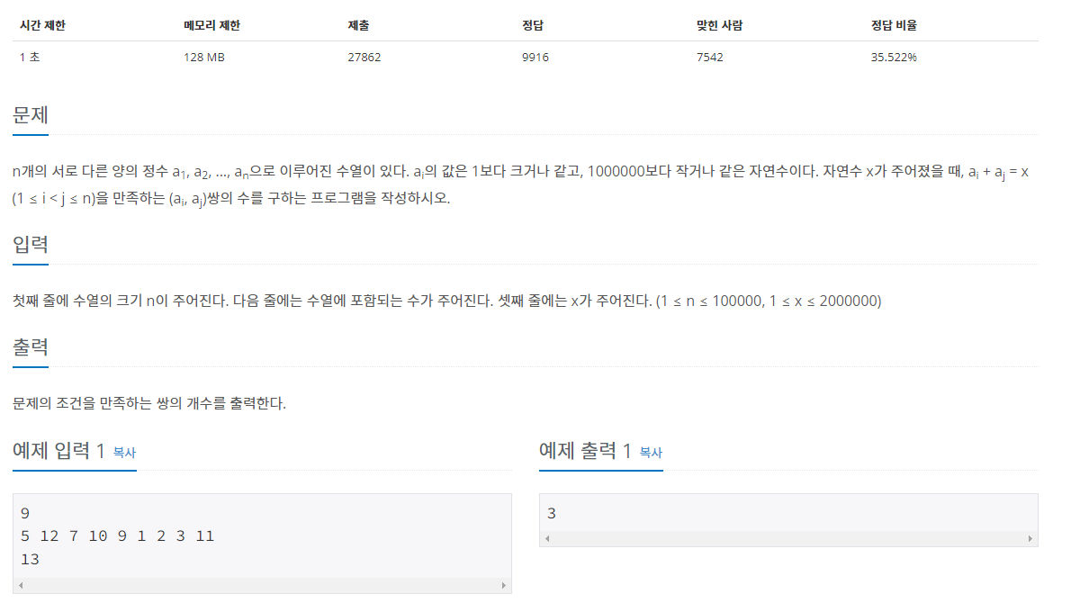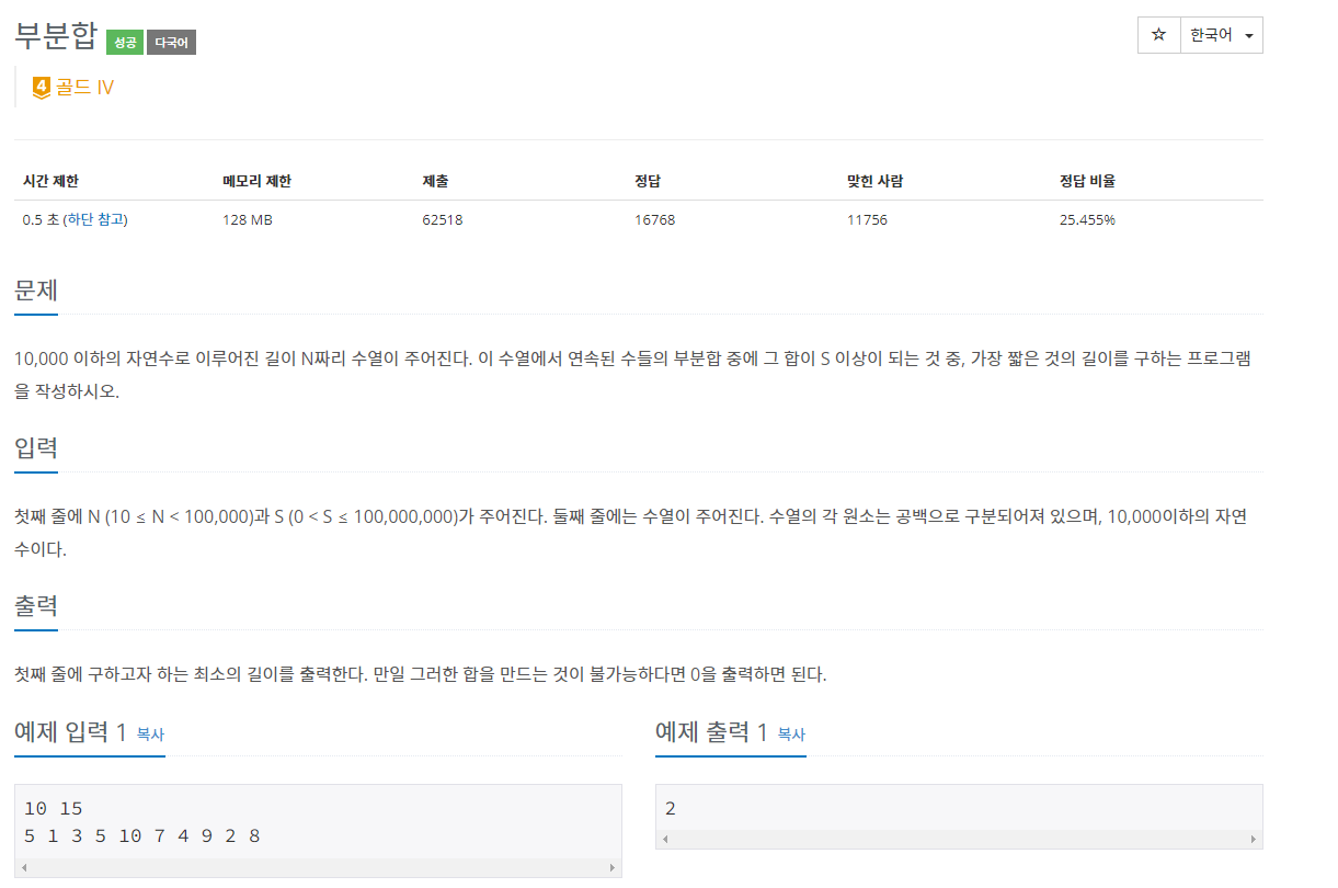 2중 for문(O(n^2))으로 풀면 시간초과가 나오기에 투 포인터 알고리즘(O(n))을 통해 풀었다.
