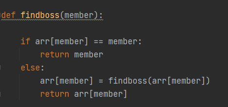 arr[member] = findboss(arr[member]) # 보스가 있다면 보스의 보스를 찾아서 반환