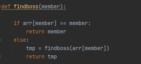 tmp = findboss(arr[member]) # 자신이 보스가 아니라면 보스 찾기