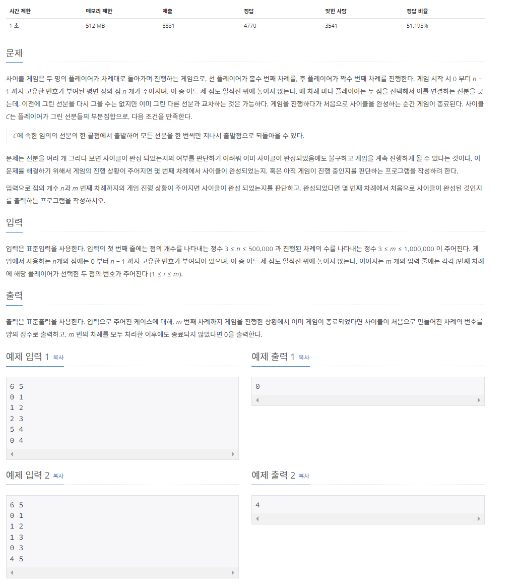 if fa == fb: # 만약 두 점의 보스가 같다면 사이클이 발생했다는 뜻