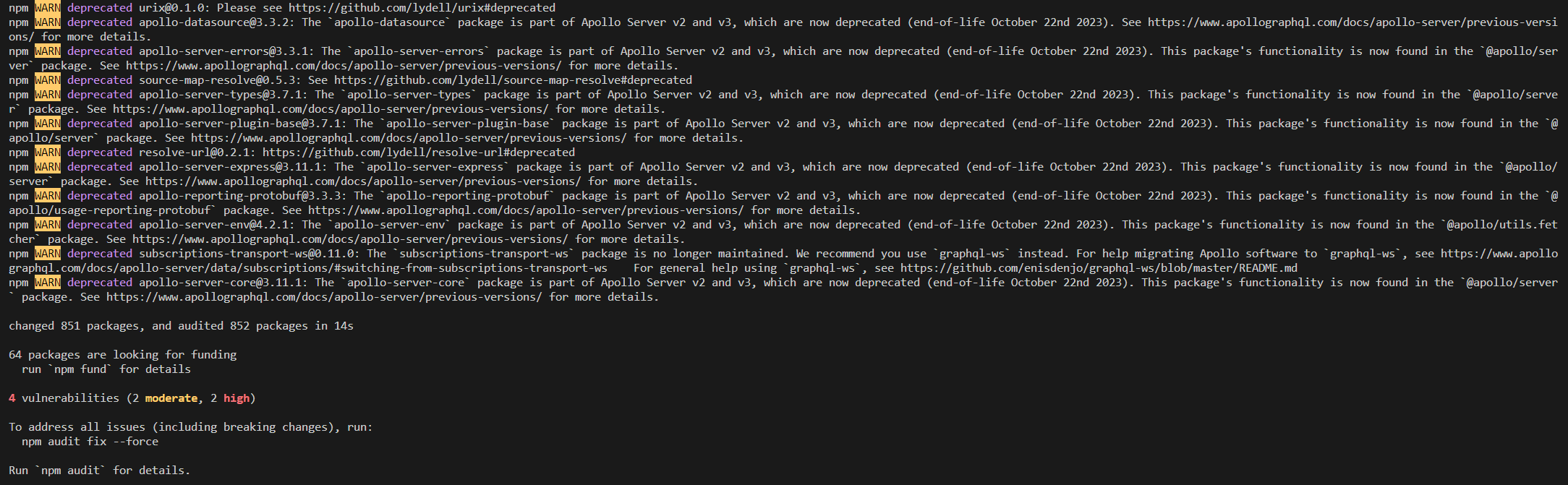 터미널에서 Vue설치를 위해 npm install -g @vue/cli를 입력하니까 엄청난 경고가 뜨면서 몇가지 취약점들을 npm audit fix --force를 통해 이슈를 해결하라는 메세지가 출력되었다.